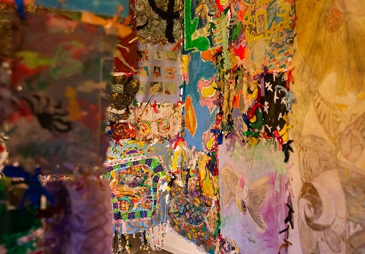 本展のメイン《岩舟ヲ理解スル為ノ儀式》(2020~) は、様々な場面に岩舟が散りばめられた巨大な絵画。